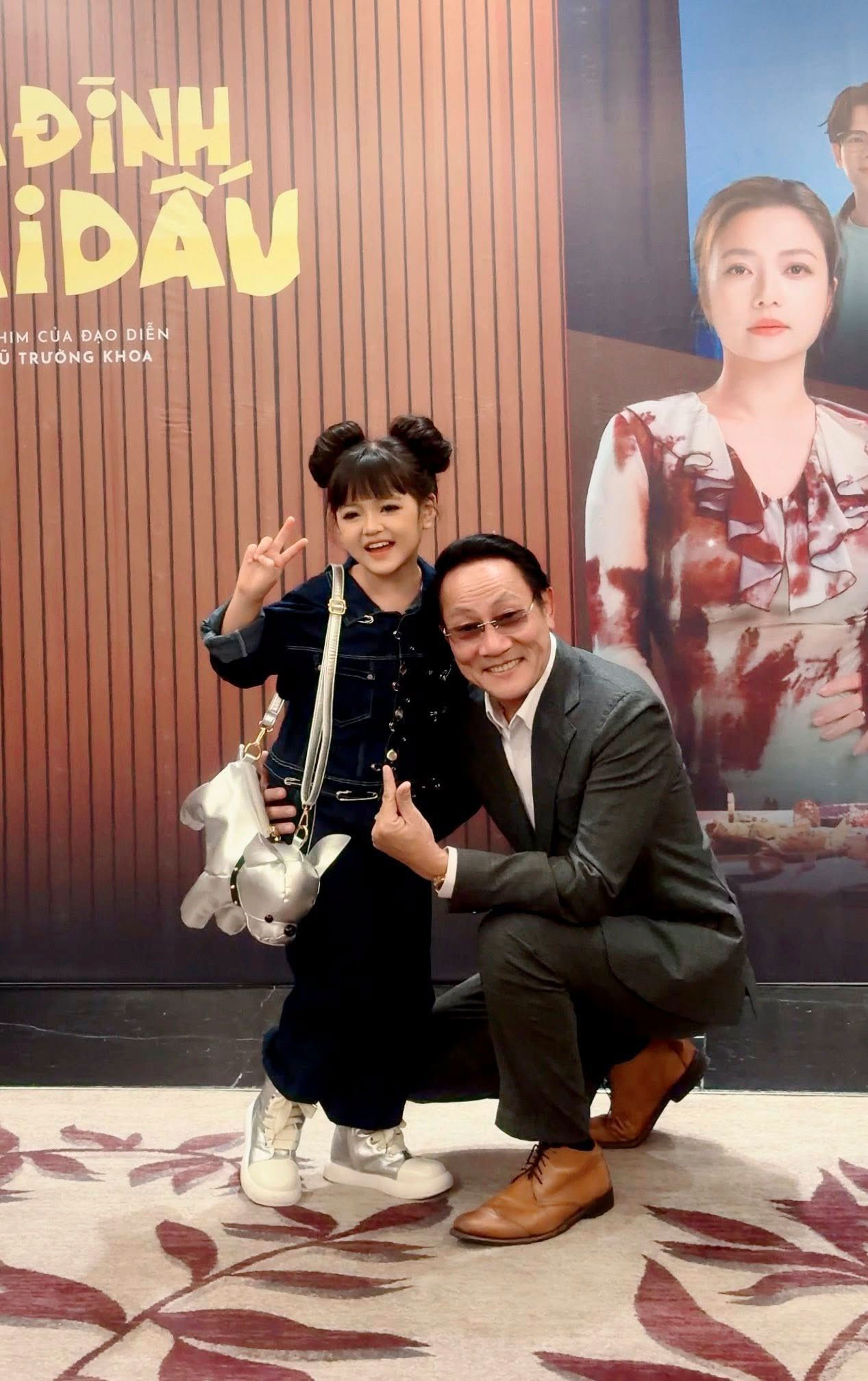Cherry An Nhiên sinh năm 2017 và đã đóng cùng nhiều diễn viên đình đám trên sóng giờ vàng. Trong ảnh, cô bé chụp hình với diễn viên Mạnh Trường.